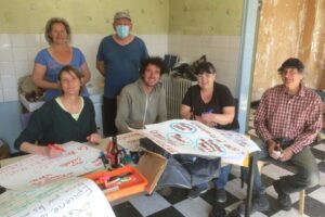 Joelle, Alain, Isabelle, Romain, Martine et Dany, membres actifs du groupe pour ouvrir au plus vite La Boutique, future épicerie coopérative et alternative à la grande distribution.